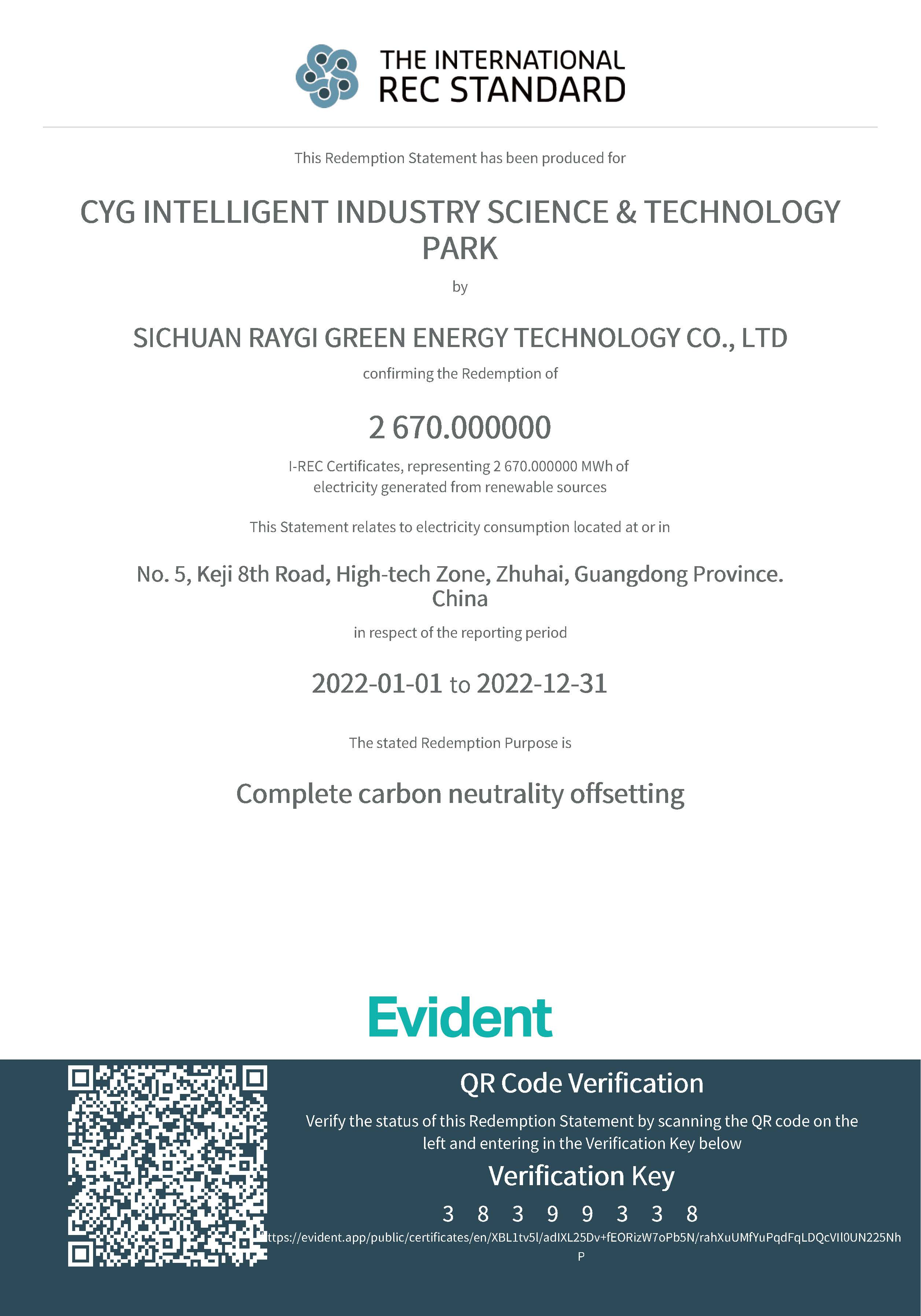 截至2022年12月31日,bbin宝盈智能产业科技园通过屋顶光伏系统、储能系统综合能源项目自主减少了超百吨二氧化碳当量排放,剩余部分通过购买并注销I-REC国际绿证及VCUs自愿减排指标的形式实现了抵消。